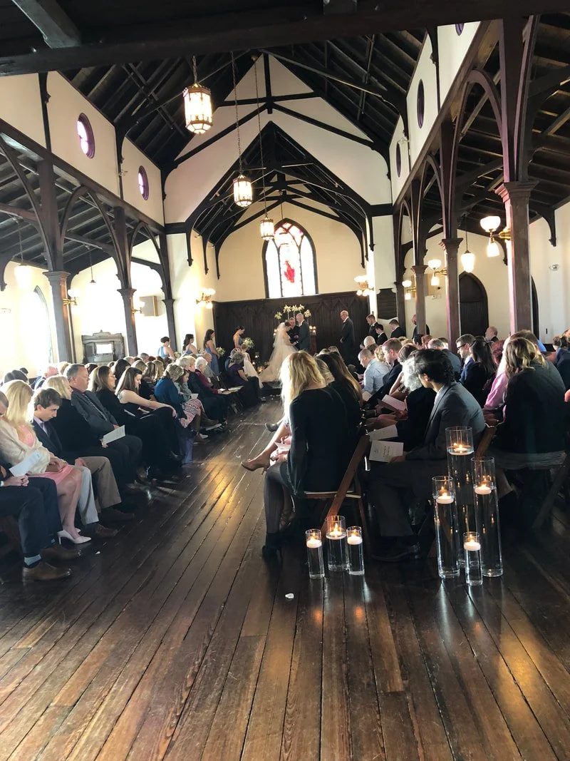 This chapel in uptown Raleigh is so beautiful! Our Raleigh musicians love performing here. Together, we provided a violin harp duet in Raleigh NC at All Saints Chapel.
